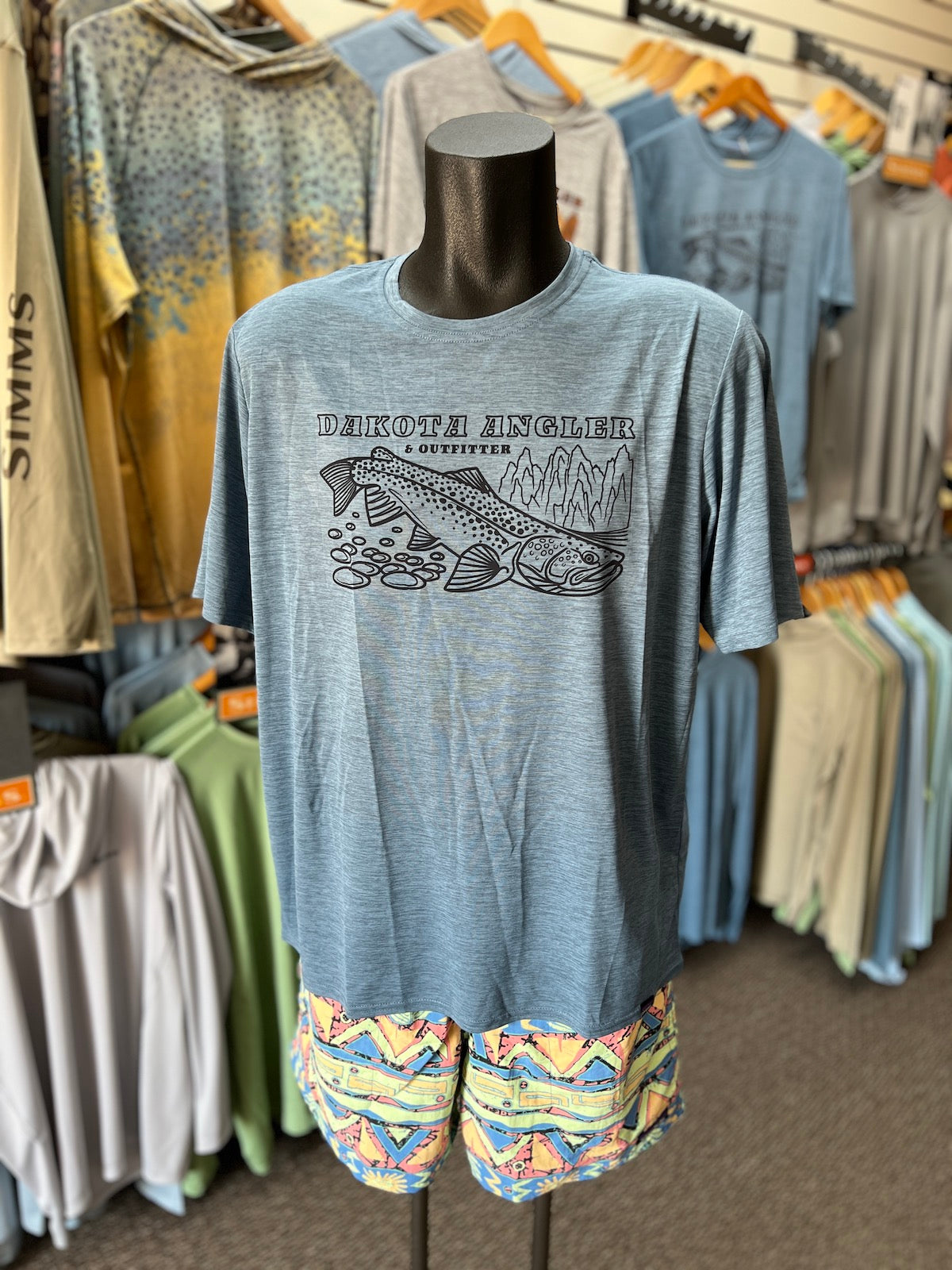 This shirt also features our very own Black Hills Brown Trout logo, designed by Casey Underwood, on the back of the shirt in black and white so you can fish in style.