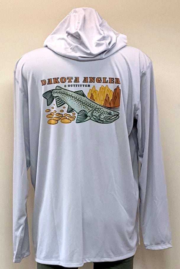 Stay ultra-fresh in the Tech Hoody that dials down the heat and cranks the comfort with an easy-breathing, moisture-wicking, sun-blocking fabric formula. Features our DAO logo designed by Casey Underwood.