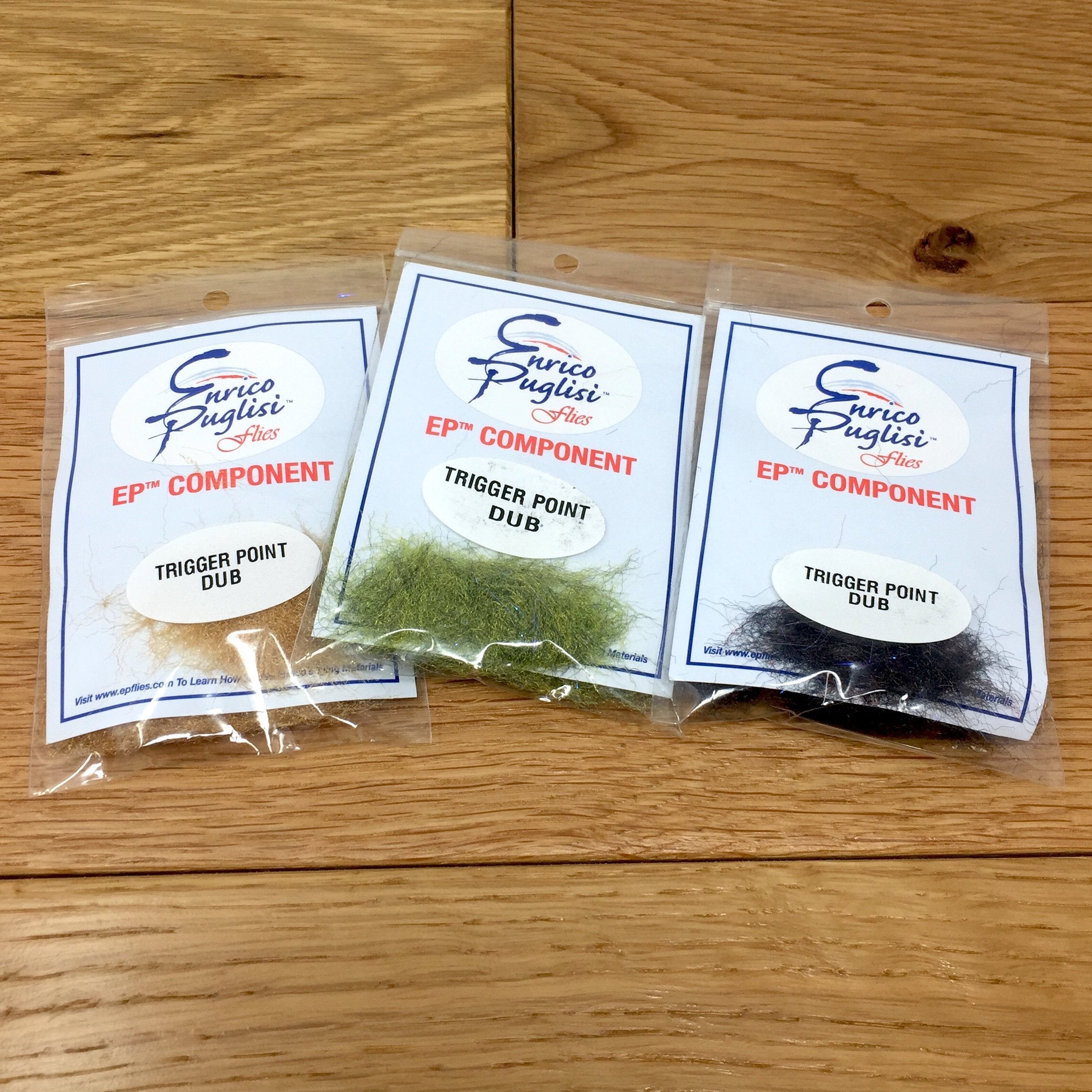 EP Trigger Point Dub- Dubbing made from the same material as Trigger point fibers with a touch of flash. Use in conjunction with trigger point fibers and trigger point mayfly tails for easy to tie mayfly patterns. Also great when used for a caddis body and Trigger Point fibers for the adult caddis wing.
