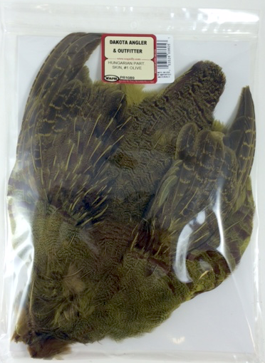 Wapsi Hungarian Partridge Skin Olive Saddle Hackle, Hen Hackle, Asst. Feathers
