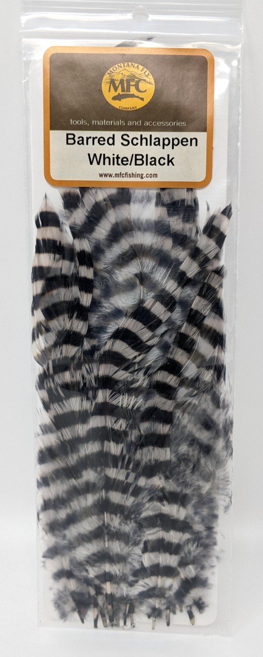 Montana Fly Company Barred Schlappen is great for tying trout streamers, as well as various steelhead, saltwater, and warmwater flies. Excellent barring, and great colors.