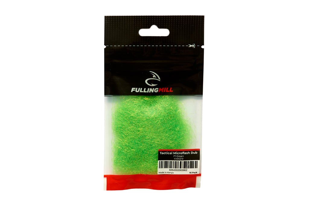 Fulling Mill Tactical Microflash dub is a fine-cut, pearlescent, translucent, synthetic, dubbing similar to ice dub or prism dub.